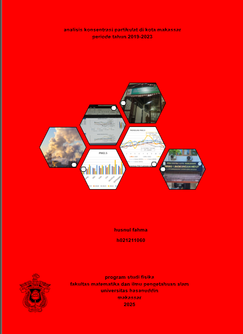 FAHMA, HUSNUL (2025) ANALISIS KONSENTRASI PARTIKULAT DI KOTA MAKASSAR PERIODE TAHUN 2019-2023 = ANALYSIS OF PARTICULATE MATTER CONCENTRATION IN MAKASSAR CITY PERIOD 2019-2023. Skripsi thesis, UNIVERSITAS HASANUDDIN MAKASSAR.