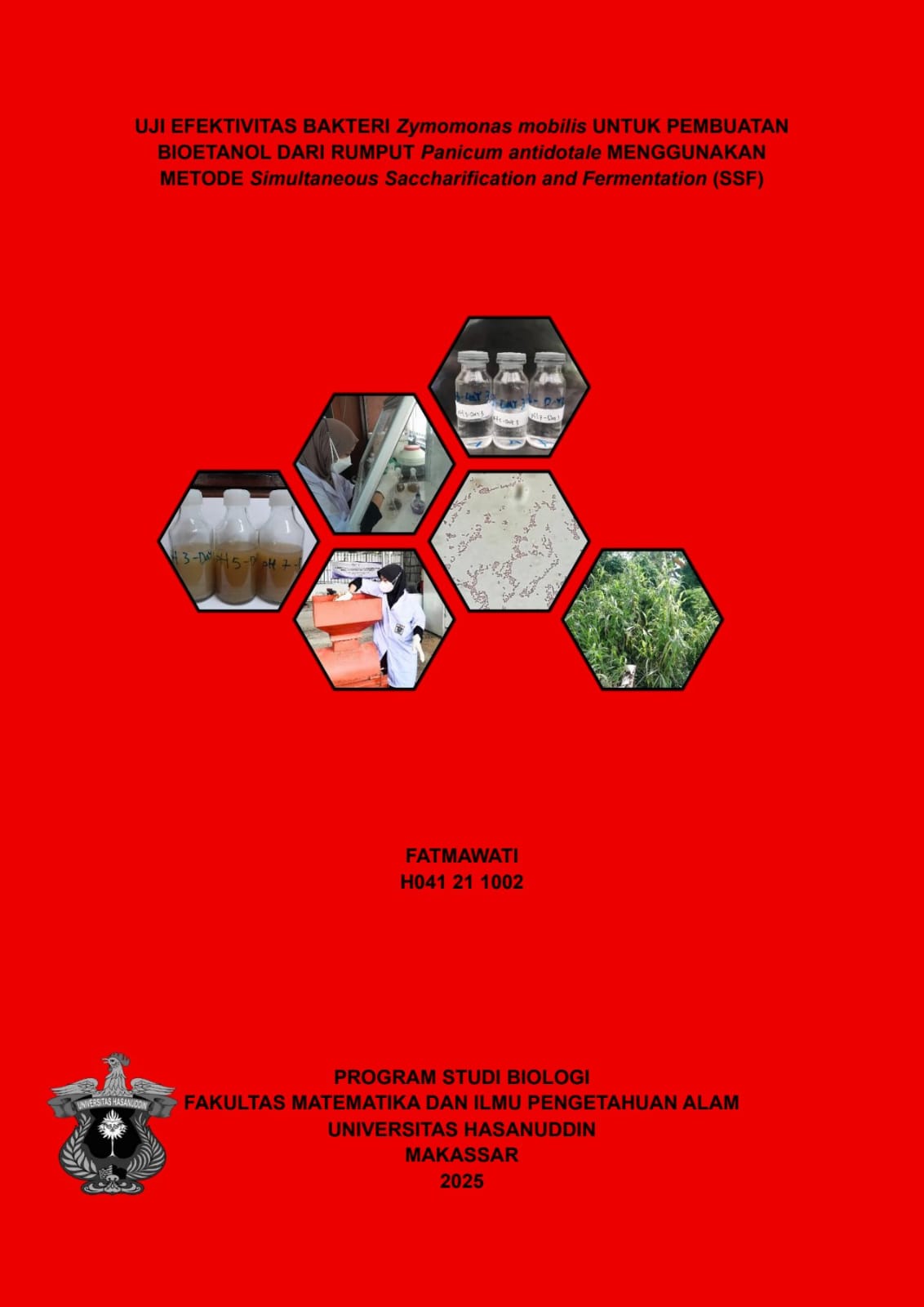 FATMAWATI, FATMAWATI (2025) UJI EFEKTIVITAS BAKTERI Zymomonas mobilis UNTUK PEMBUATAN BIOETANOL DARI RUMPUT Panicum antidotale MENGGUNAKAN METODE Simultaneous Saccharification and Fermentation (SSF) = Effectiveness Test of Zymomonas mobilis Bacteria for Bioethanol Production from Panicum antiodotale Grass Using Simultaneous Saccharification and Fermentation (SSF) Method. Skripsi thesis, Universitas Hasanuddin.