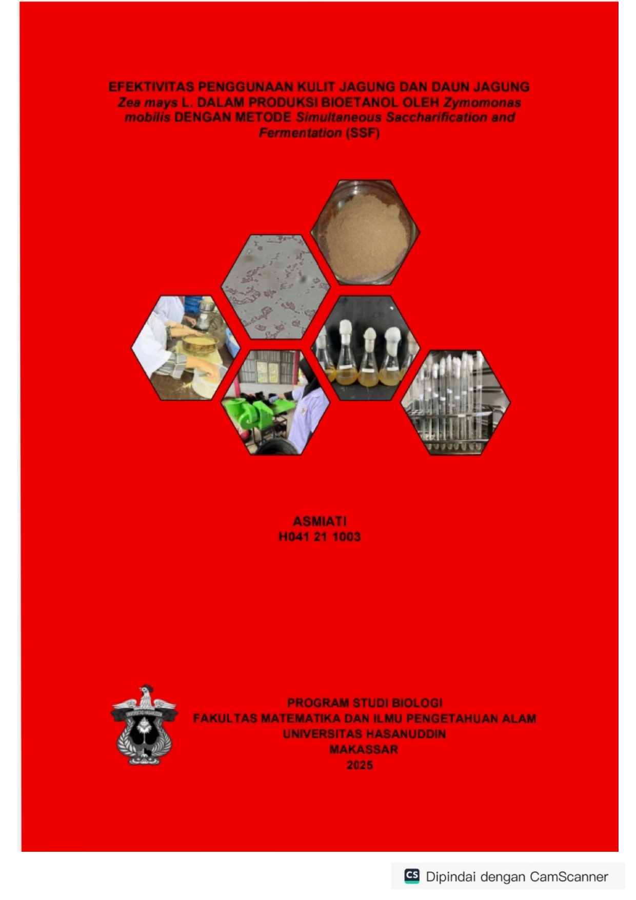 ASMIATI, ASMIATI (2025) EFEKTIVITAS PENGGUNAAN KULIT JAGUNG DAN DAUN JAGUNG Zea mays L. DALAM PRODUKSI BIOETANOL OLEH Zymomonas mobilis DENGAN METODE Simultaneous Saccharification and Fermentation (SSF) = EFFECTIVENESS OF USING CORN SKIN AND CORN LEAVES OF Zea mays L. IN BIOETHANOL PRODUCTION BY Zymomonas mobilis USING THE SIMULTANEOUS SACCHARIFICATION AND FERMENTATION (SSF) METHOD. Skripsi thesis, Universitas Hasanuddin.
