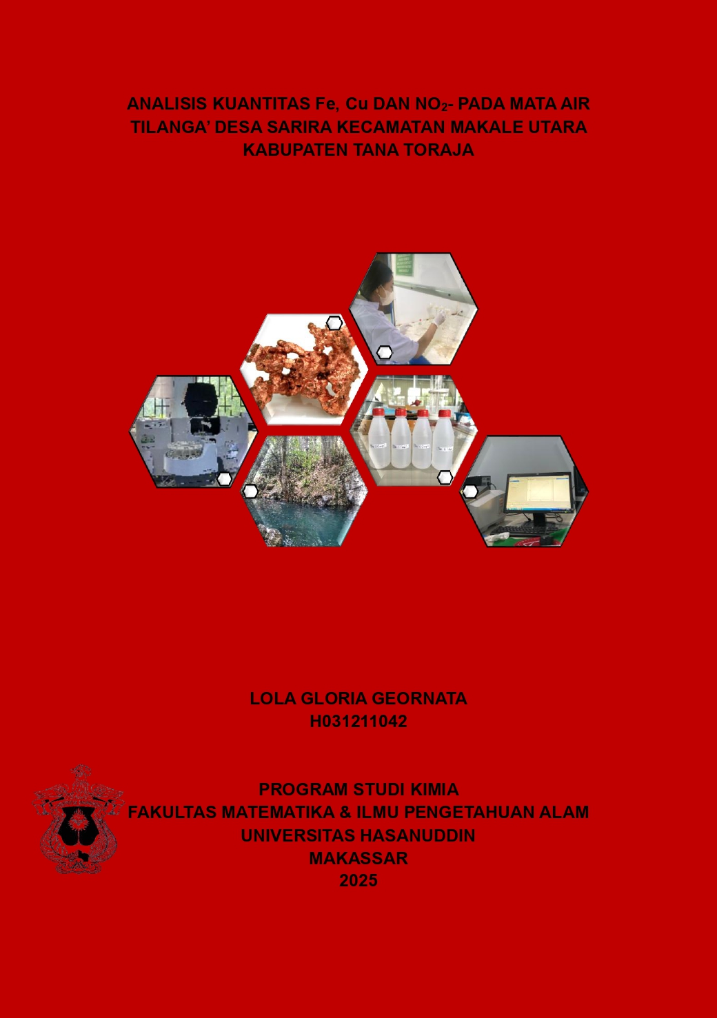 GEORNATA, LOLA GLORIA (2025) ANALISIS KUANTITAS Fe, Cu dan NO2- PADA MATA AIR TILANGA’ DESA SARIRA KECAMATAN MAKALE UTARA KABUPATEN TANA TORAJA = Analysis Quantity of Fe, Cu and NO2- in Tilanga' Spring Water Sarira Village Makale Utara Sub-district Tana Toraja Regency. Skripsi thesis, UNIVERSITAS HASANUDDIN MAKASSAR.