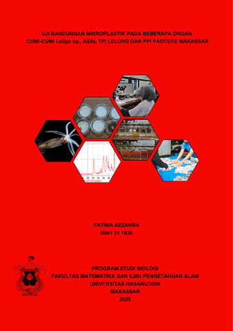 AZZAHRA, FATIMA (2025) Uji Kandungan Mikroplastik Pada Beberapa Organ Cumi-Cumi Loligo sp., Asal TPI Lelong Dan PPI Paotere Makassar = Microplastic Content Test on Some Organs of Loligo sp. Squid, Originating from TPI Lelong and PPI Paotere Makassar. Skripsi thesis, UNIVERSITAS HASANUDDIN MAKASSAR.