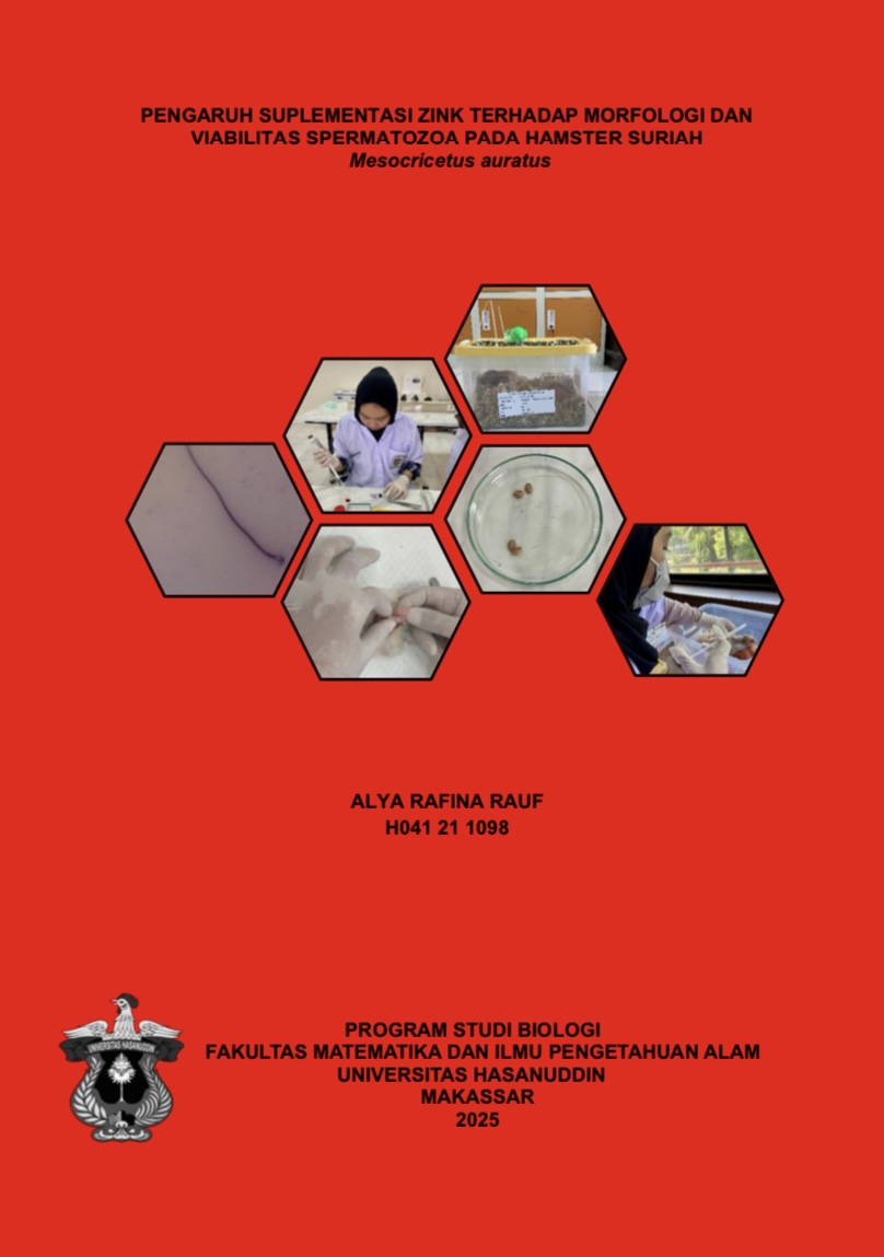 RAUF, ALYA RAFINA (2025) Pengaruh Suplementasi Zink Terhadap Morfologi dan Viabilitas Spermatozoa Pada Hamster Suriah Mesocricetus auratus = The Effect of Zinc Supplementation on the Morphology and Viability of Spermatozoa in Syrian Hamsters Mesocricetus auratus. Skripsi thesis, Universitas Hasanuddin.