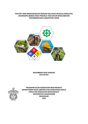 NABHAN, MUHAMMAD RAID (2025) FAKTOR YANG BERHUBUNGAN DENGAN KELUHAN MUSCULOSKELETAL DISORDERS (MSDS) PADA PEKERJA TANI SAYUR DIKECAMATAN TINGGIMONCONG KABUPATEN GOWA = Factors Associated with Musculoskeletal Disorders (MSDs) Among Vegetable Farmers in Tinggimoncong Subdistrict, Gowa Regency. Skripsi thesis, UNIVERSITAS HASANUDDIN MAKASSAR.