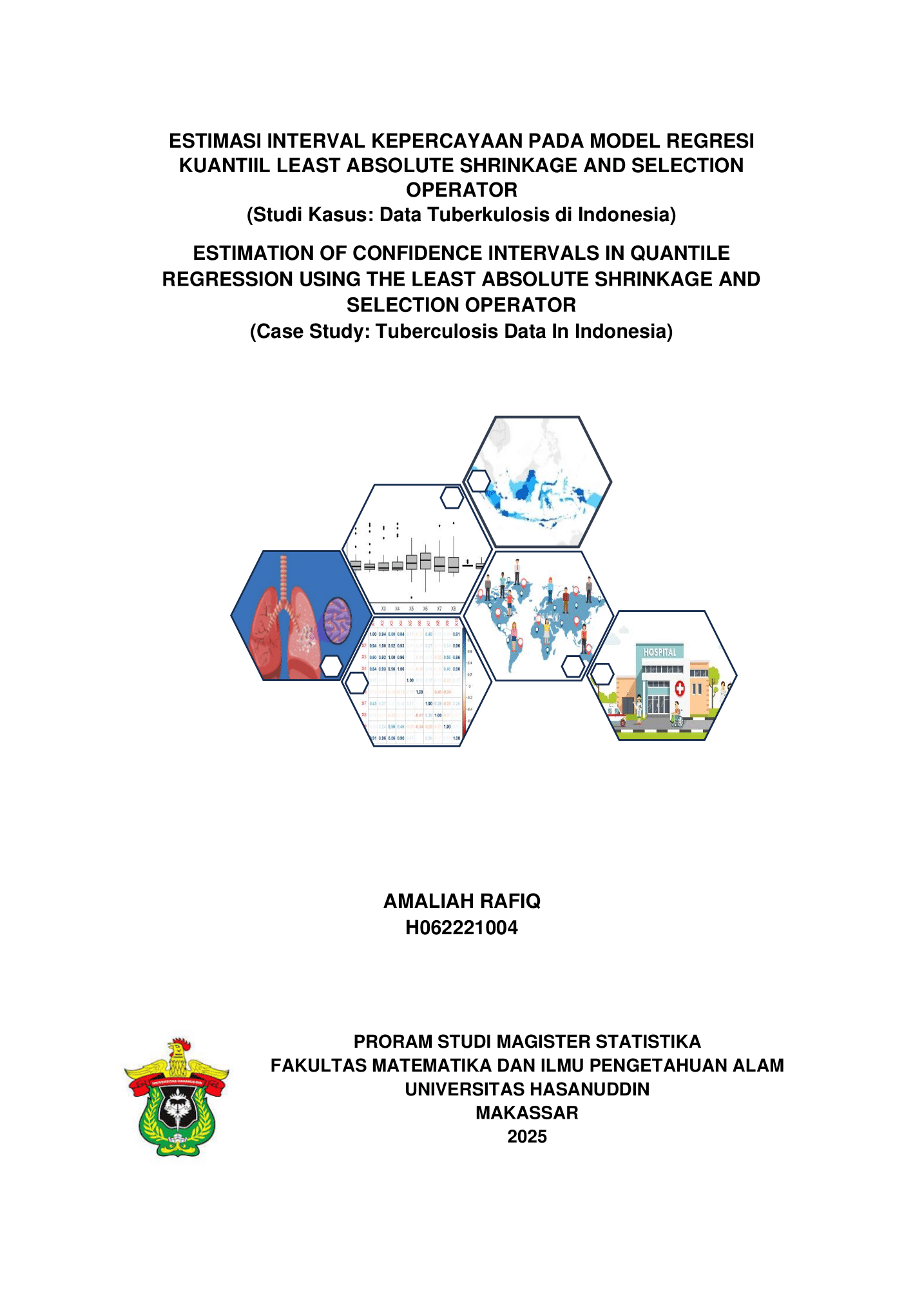 RAFIQ, AMALIAH (2025) Estimasi Interval Kepercayaan Model Regresi Kuantil Least Absolute Shringkage and Selection Operator (Studi kasus: Data Tuberkulosis di Indonesia) = Estimation Of Confidence Intervals Quantile Regression Using The Least Absolute Shrinkage and Selection Operator (Case Study: Tuberculosis Data In Indonesia). Thesis thesis, Universitas Hasanuddin.