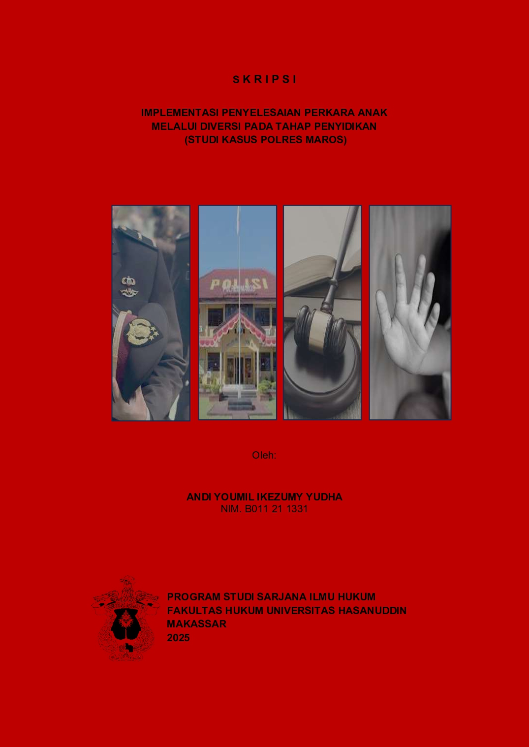 YUDHA, ANDI YOUMIL IKEZUMY (2025) IMPLEMENTASI PENYELESAIAN PERKARA ANAK MELALUI DIVERSI PADA TAHAP PENYIDIKAN (STUDI KASUS POLRES MAROS) = IMPLEMENTATION OF JUVENILE CASE SETTLEMENT THROUGH DIVERSION AT THE INVESTIGATION STAGE (CASE STUDY OF MAROS POLICE STATION). Skripsi thesis, UNIVERSITAS HASANUDDIN.