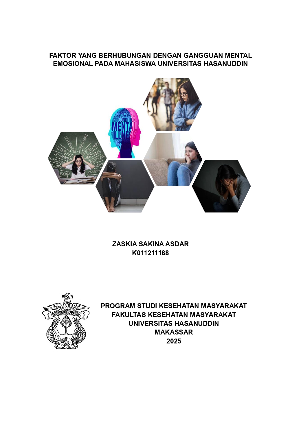 ASDAR, ZASKIA SAKINA (2025) Faktor yang Berhubungan dengan Gangguan Mental Emosional pada Mahasiswa Universitas Hasanuddin = Factors Related to Emotional Mental Disorders among Hasanuddin University Students. Skripsi thesis, UNIVERSITAS HASANUDDIN MAKASSAR.