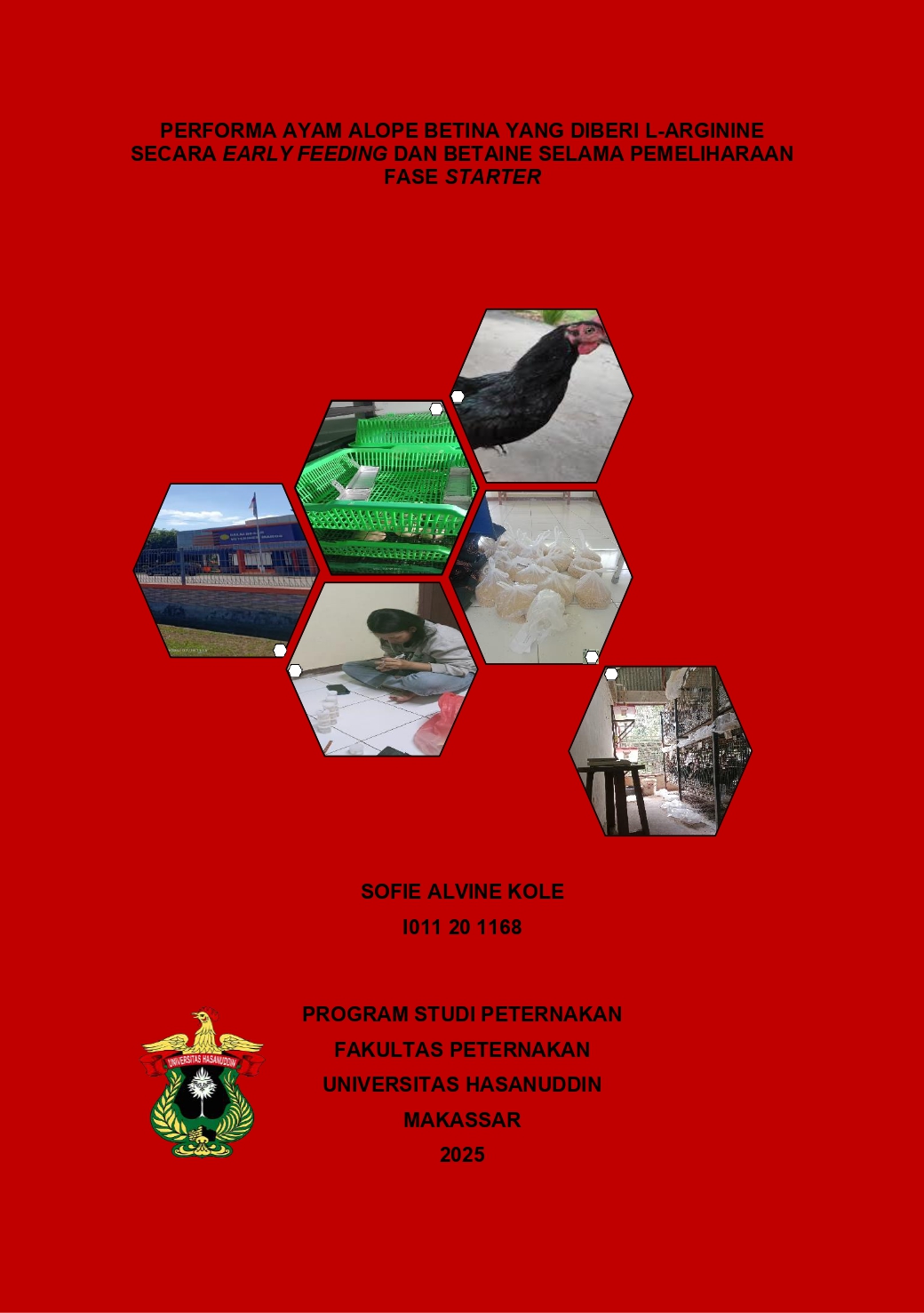 KOLE, SOFIE ALVINE (2025) Performa Ayam Alope Betina yang Diberi L-Arginine Secara Early Feeding dan Betaine Selama Pemeliharaan Fase Starter = Performance of Female Alope Chicken Given L-Arginine by Early Feeding and Betaine During Starter Phase Maintenance. Skripsi thesis, Universitas Hasanuddin.
