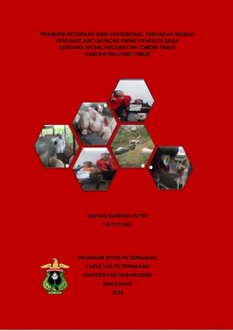 PUTRI, WAYAN SUHERNI (2025) Persepsi Peternak Babi Tradisional Terhadap Wabah Penyakit Asf (African Swine Fever) di Desa Cendana Hitam, Kecamatan Tomoni Timur, Kabupaten Luwu Timur = Traditional Pig Farmers' Perceptions of the African Swine Fever (ASF) Outbreak in Cendana Hitam Village, Tomoni Timur Subdistrict, Luwu Timur Regency. Skripsi thesis, Universitas Hasanuddin.