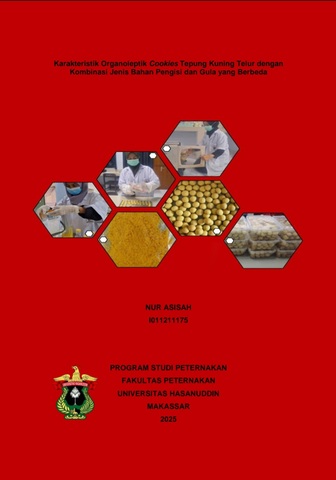 ASISAH, NUR (2025) Karakteristik Organoleptik Cookies Tepung Kuning Telur dengan Kombinasi Jenis Bahan Pengisi dan Gula yang Berbeda = Organoleptic Characteristics of Egg Yolk Flour Cookies with Different Combinations of Filling and Sugar Types. Skripsi thesis, Universitas Hasanuddin.