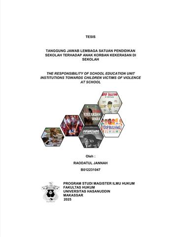 JANNAH, RAODATUL (2025) Tanggung Jawab Lembaga Satuan Pendidikan Sekolah Terhadap Anak Korban Kekerasan di Sekolah = THE RESPONSIBILITY OF SCHOOL EDUCATION UNIT INSTITUTIONS TOWARDS CHILDREN VICTIMS OF VIOLENCE AT SCHOOL. Thesis thesis, UNIVERSITAS HASANUDDIN.