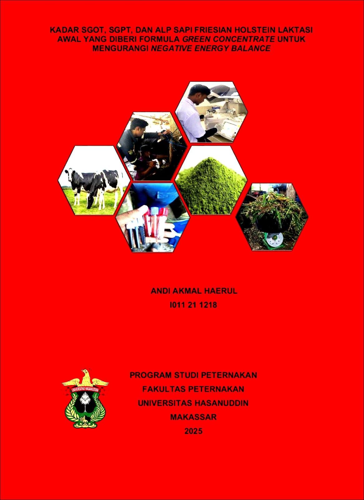 HAERUL, ANDI AKMAL (2025) Kadar SGOT, SGPT, dan ALP sapi Friesian Holstein laktasi awal yang diberi formula green concentrate untuk mengurangi Negative Energy Balance = SGOT, SGPT, and ALP levels of early lactation Holstein Friesian cows fed green concentrate formula to reduce Negative Energy Balance. Skripsi thesis, Universitas Hasanuddin.