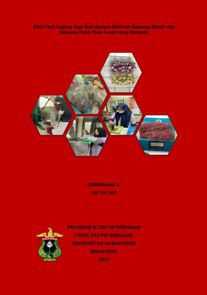 A, JUMRIANAH (2025) Sifat Fisik Daging Sapi Bali dengan Marinasi Bawang Merah dan Bawang Putih pada Level yang Berbeda = Physical Quality of Balinese Beef with Shallot and Garlic Marinade at Different Levels. Skripsi thesis, Universitas Hasanuddin.