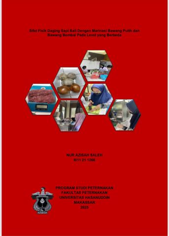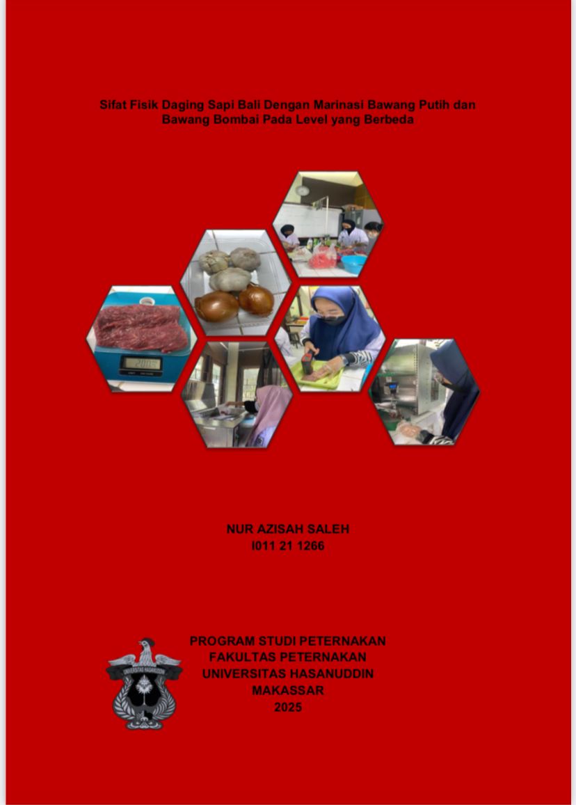 SALEH, NUR AZISAH (2025) Sifat Fisik Daging Sapi Bali Dengan Marinasi Bawang Putih dan Bawang Bombai Pada Level Yang Berbeda = Physical Properties of Balinese Beef Marinated with Garlic and Onions at Different Levels. Skripsi thesis, Universitas Hasanuddin.