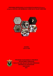 Abstrak ANANDA. Performa Reproduksi Calon Induk Rajungan (Portunus pelagicus) Betina dari Berbagai Varietas di Teluk Parepare Sulawesi Selatan (dibimbing oleh Yushinta Fujaya). Pendahuluan. Rajungan (Portunus pelagicus) merupakan salah satu komoditas perikanan bernilai ekonomis tinggi yang mengalami tekanan akibat intensifikasi penangkapan. Upaya pengembangan budidaya memerlukan informasi terkait performa reproduksi calon induk yang berkualitas. Tujuan. Penelitian ini bertujuan untuk mengetahui dan membandingkan performa reproduksi calon induk rajungan betina dari berbagai varietas (corak) di Teluk Parepare, Sulawesi Selatan. Metode. Parameter yang diamati meliputi ukuran morfometrik (lebar dan panjang karapas, serta bobot tubuh), berat spermatheca, diameter spermatofor, dan jumlah spermatozoa. Sampel yang digunakan sebanyak 30 ekor rajungan betina yang dikelompokkan berdasarkan corak karapas (corak 1, corak 2, dan corak 3). Hasil. Hasil penelitian menunjukkan bahwa corak 2 memiliki rata-rata lebar karapas, bobot tubuh, dan jumlah spermatozoa terbesar (112 ± 9.7 mm, 73.1 ± 15.4 g, dan 83×10⁸). Sementara itu, Corak 3 menunjukan bobot spermatheca terbesar (0.677 g), diameter spermatofor tertinggi (284.496 ± 99.034 µm) dan jumlah spermatofor terbanyak (1436 ± 638,43), menandakan potensi reproduksi yang lebih tinggi dibandingkan corak 1. Tingkat kepenuhan spermatheca mencapai 100%, menandakan terjadinya proses kopulasi sempurna. Berdasarkan hasil analisis ANOVA, terdapat perbedaan signifikan pada berat spermatheca, diameter spermatofor dan jumlah spermatozoa antar corak. Kesimpula. Penelitian ini menunjukkan bahwa variasi morfologi antar varietas berpengaruh terhadap potensi reproduksi rajungan betina, sehingga dapat dijadikan pertimbangan dalam pemilihan calon induk unggul untuk mendukung program pembenihan rajungan.