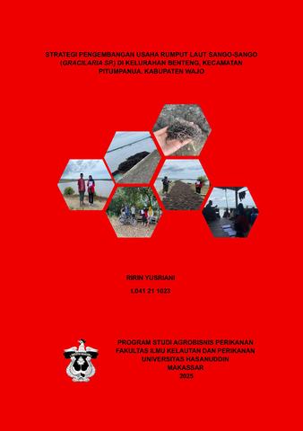 ABSTRAK RIRIN YUSRIANI, Strategi Pengembangan Usaha Budidaya Rumput Laut Sango-Sango (Gracilaria sp.) Di Kelurahan Benteng, Kecamatan Pitumpanua, Kabupaten Wajo, (dibimbing oleh Sri Suro Adhawati) Rumput laut Gracilaria sp. atau Sango-Sango merupakan komoditas unggulan sektor perikanan di Sulawesi Selatan, khususnya di Kelurahan Benteng, Kecamatan Pitumpanua, Kabupaten Wajo. Meskipun memiliki potensi budidaya yang tinggi, usaha ini masih menghadapi berbagai tantangan seperti ketergantungan terhadap tengkulak, keterbatasan modal, dan rendahnya penerapan teknologi. Penelitian ini bertujuan untuk menganalisis kondisi usaha budidaya rumput laut Sango-Sango serta merumuskan strategi pengembangan yang tepat dan berkelanjutan. Metode yang digunakan adalah pendekatan mixed method dengan desain sequential exploratory, melibatkan observasi, wawancara, dan dokumentasi terhadap 24 pembudidaya yang dipilih secara purposive. Data dianalisis menggunakan SWOT, IFAS, dan EFAS. Hasil menunjukkan bahwa sebagian besar pembudidaya telah menjalankan usaha secara mandiri dengan teknik semi-intensif, sarana utama tersedia, dan frekuensi panen mencapai 7-8 kali per tahun. Posisi usaha berada pada Kuadran I (strategi agresif), sehingga pengembangan dapat diarahkan pada peningkatan kapasitas SDM, optimalisasi sarana, serta perluasan akses pasar dan teknologi. Strategi ini diharapkan mampu meningkatkan nilai tambah, memperluas jaringan usaha, serta menciptakan sistem budidaya yang lebih adaptif dan berkelanjutan