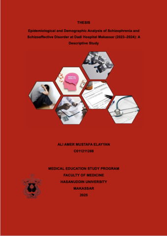 ELAYYAN, ALI AMER MUSTAFA (2025) Analisis Epidemiologi dan Demografi Skizofrenia dan Gangguan Skizoafektif di Rumah Sakit Dadi Makassar (2023–2024): Studi Deskriptif = Epidemiological and Demographic Analysis of Schizophrenia and Schizoaffective Disorder at Dadi Hospital Makassar (2023–2024): A Descriptive Study. Skripsi thesis, Universitas Hasanuddin.