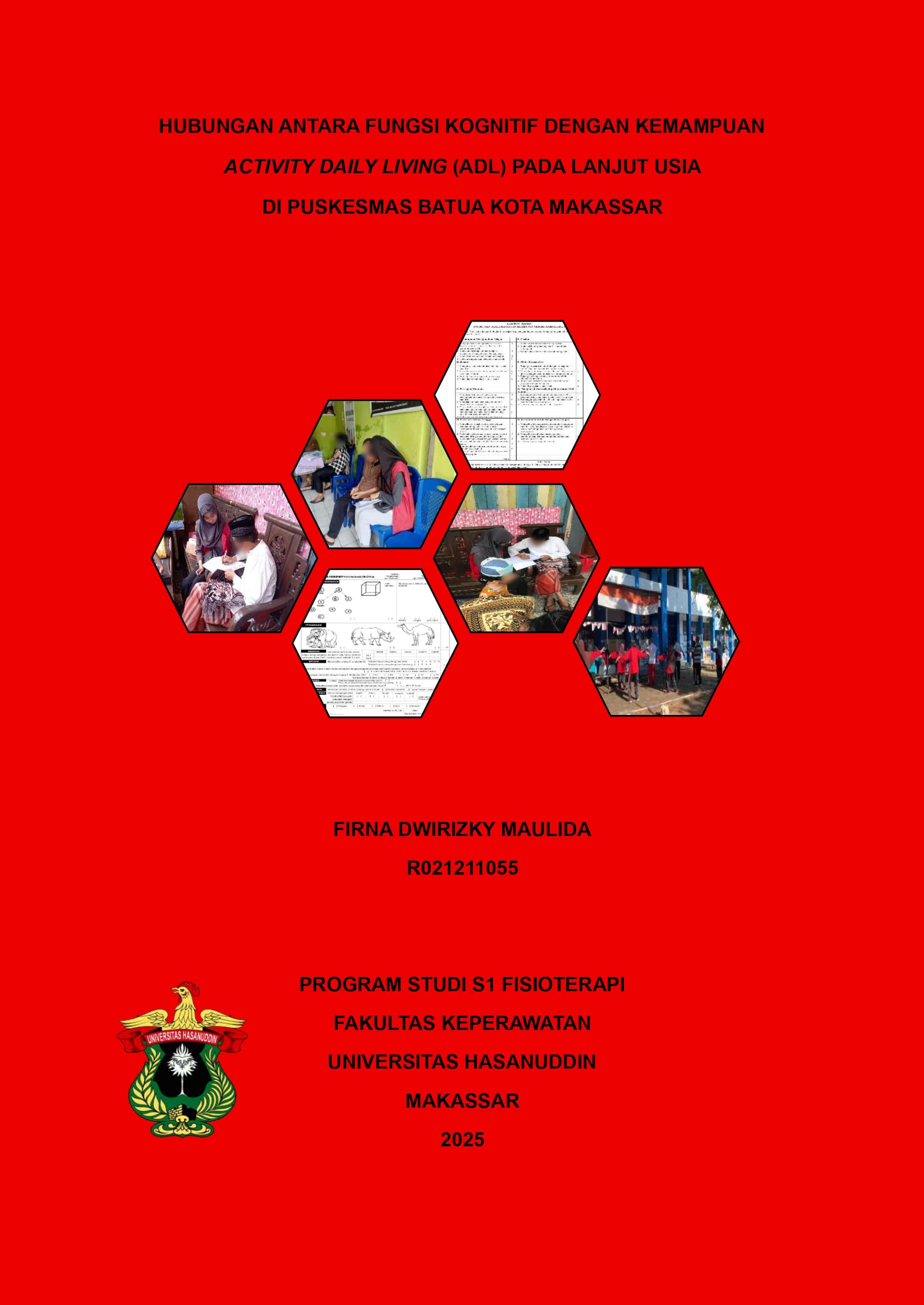 MAULIDA, FIRNA DWIRIZKY (2025) HUBUNGAN ANTARA FUNGSI KOGNITIF DENGAN KEMAMPUAN ACTIVITY DAILY LIVING (ADL) PADA LANJUT USIA DI PUSKESMAS BATUA KOTA MAKASSAR = THE RELATIONSHIP BETWEEN COGNITIVE FUNCTION AND ABILITY ACTIVITY DAILY LIVING (ADL) IN THE ELDERLY AT THE BATUA HEALTH CENTER IN MAKASSAR CITY. Skripsi thesis, Universitas Hasanuddin.