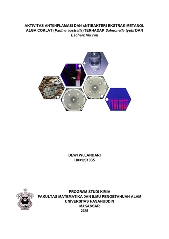 WULANDARI, DEWI (2025) Aktivitas Antiinflamasi dan Antibakteri Ekstrak Metanol Alga Coklat (Padina australis) Terhadap Salmonella typhi dan Escherichia coli = Anti-Inflammatory and Antibacterial Activity of Methanol Extract of Brown Algae (Padina australis) Against Salmonella typhi and Escherichia coli. Skripsi thesis, Universitas Hasanuddin.