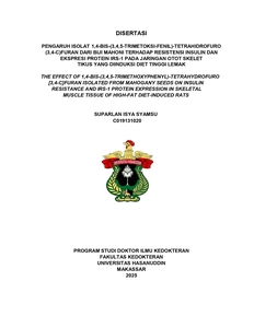 Syamsu, A. Suparlan Isya (2025) PENGARUH ISOLAT 1,4-BIS-(3,4,5-TRIMETOKSI-FENIL)-TETRAHIDROFURO (3,4-C)FURAN DARI BIJI MAHONI TERHADAP RESISTENSI INSULIN DAN EKSPRESI PROTEIN IRS-1 PADA JARINGAN OTOT SKELET TIKUS YANG DIINDUKSI DIET TINGGI LEMAK = THE EFFECT OF 1,4-BIS-(3,4,5-TRIMETHOXYPHENYL)-TETRAHYDROFURO [3,4-C]FURAN ISOLATED FROM MAHOGANY SEEDS ON INSULIN RESISTANCE AND IRS-1 PROTEIN EXPRESSION IN SKELETAL MUSCLE TISSUE OF HIGH-FAT DIET-INDUCED RATS. Disertasi thesis, Universitas Hasanuddin.