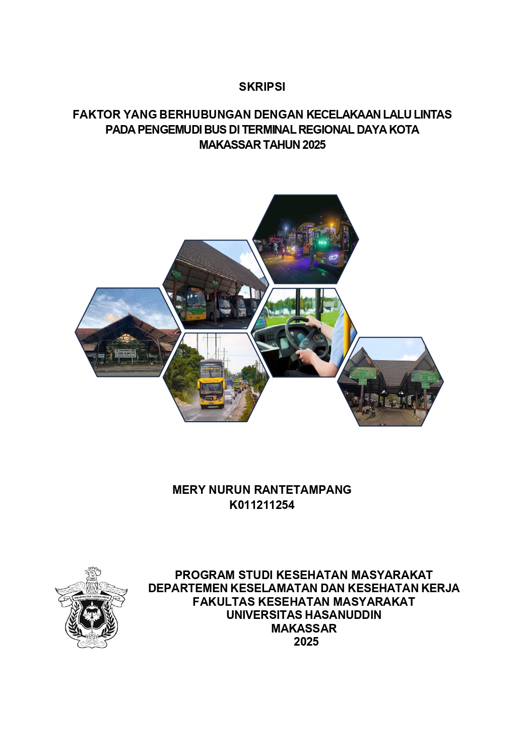 TAMPANG, MERY NURUN RANTE (2025) Faktor yang Berhubungan dengan Kecelakaan Lalu Lintas Pada Pengemudi Bus di Terminal Regional Daya Kota Makassar Tahun 2025 = Factors Associated with Traffic Accidents Among Bus Drivers at the Daya Regional Terminal, Makassar City, in 2025. Skripsi thesis, UNIVERSITAS HASANUDDIN MAKASSAR.