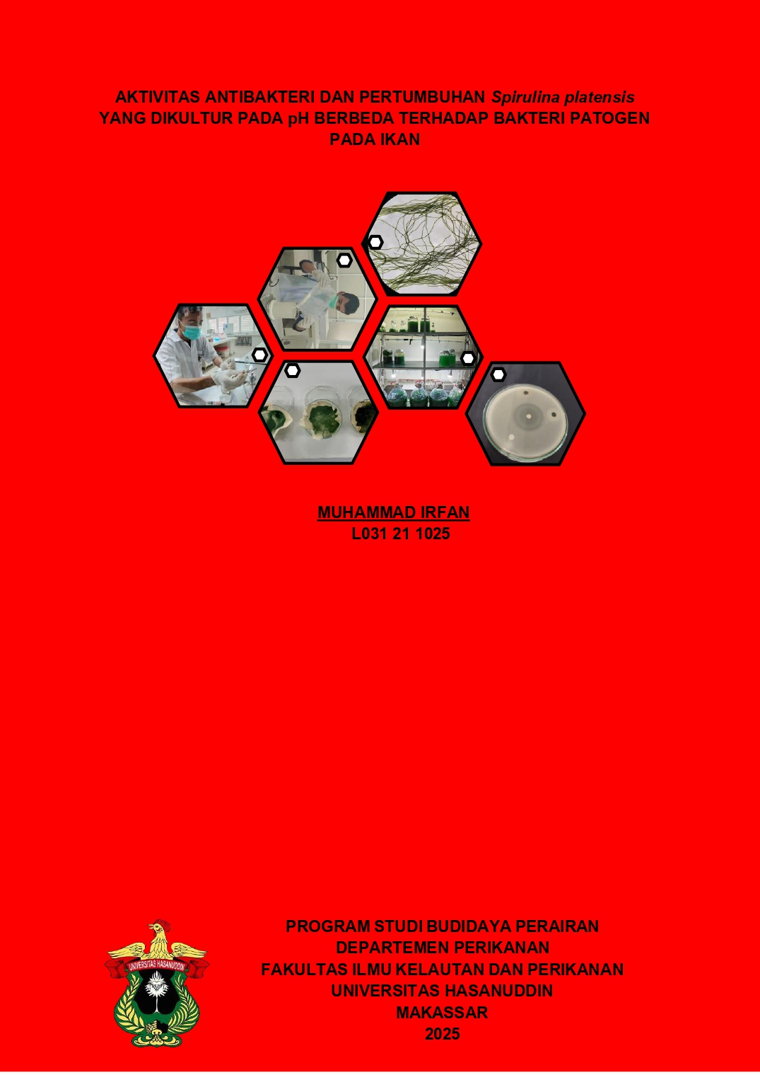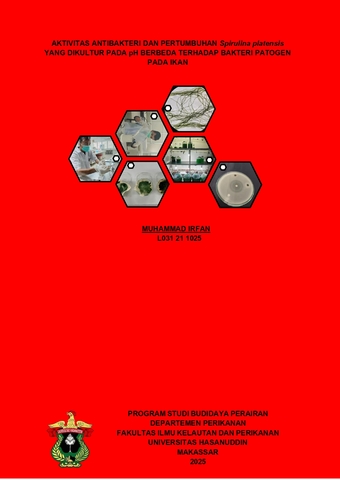 IRFAN, MUHAMMAD (2025) AKTIVITAS ANTIBAKTERI DAN PERTUMBUHAN Spirulina platensis YANG DIKULTUR PADA pH BERBEDA TERHADAP BAKTERI PATOGEN PADA IKAN = Antibacterial Activity and Growth of Spirulina platensis cultured at different pH against pathogenic bacteria in fish. Skripsi thesis, Universitas Hasanuddin.