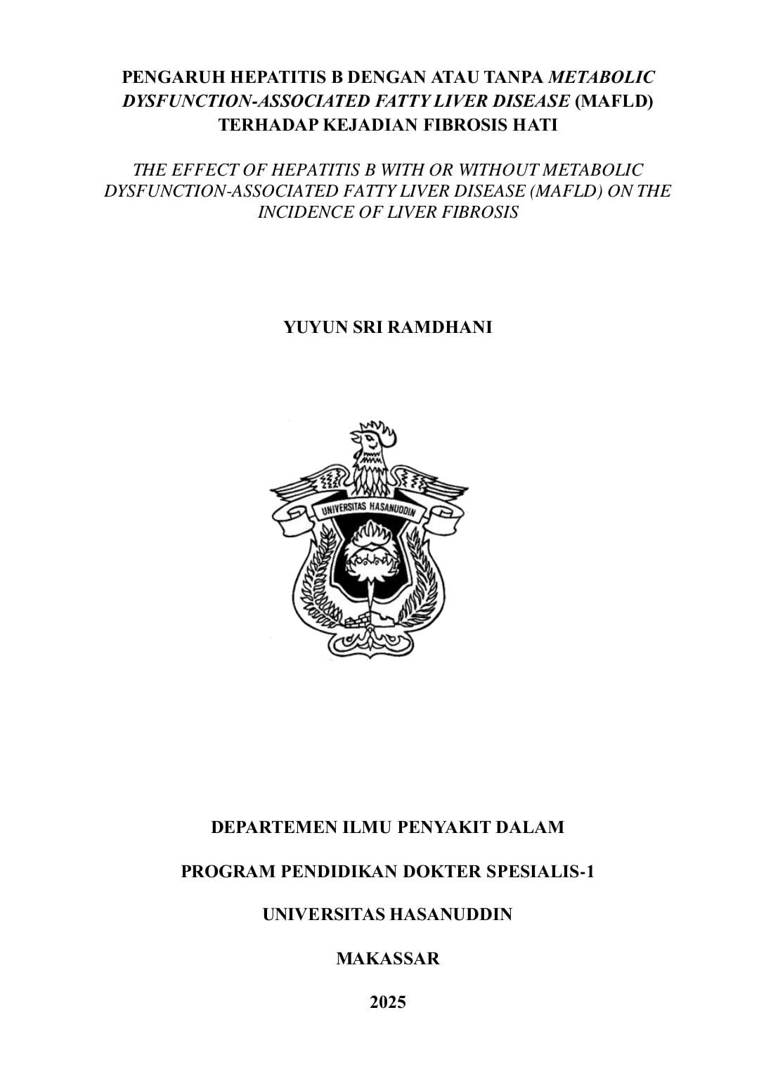 RAMDHANI, YUYUN SRI (2025) Pengaruh Hepatitis B dengan atau tanpa MAFLD terhadap Kejadian Fibrosis Hati = The Effect of Hepatitis B with or without Metabolic Dysfunction-Associated Fatty Liver Disease (MAFLD) on The Incidence of Liver Fibrosis. Thesis thesis, Universitas Hasanuddin.