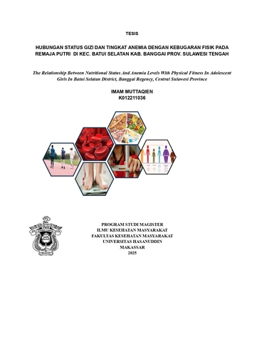 MUTTAQIEN, IMAM (2025) HUBUNGAN STATUS GIZI DAN TINGKAT ANEMIA DENGAN KEBUGARAN FISIK PADA REMAJA PUTRI DI KECAMATAN BATUI SELATAN KABUPATEN BANGGAI PROVINISI SULAWESI TENGAH = THE RELATIONSHIP BETWEEN NUTRITIONAL STATUS AND ANEMIA LEVEL WITH PHYSICAL FITNESS IN ADOLESCENT FEMALES IN SOUTH BATUI DISTRICT, BANGGAI REGENCY, CENTRAL SULAWESI PROVINCE. Skripsi thesis, UNIVERSITAS HASANUDDIN MAKASSAR.