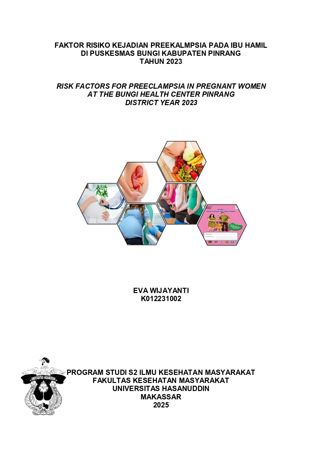 WIJAYANTI, EVA (2025) Faktor Risiko Kejadian Preeklampsia Pada Ibu Hamil di Puskesmas Bungi Kabupaten Pinrang = Risk Factors for the Incidence of Preeclampsia among Pregnant Women of Bungi Health Center in Pinrang. Thesis thesis, UNIVERSITAS HASANUDDIN MAKASSAR.
