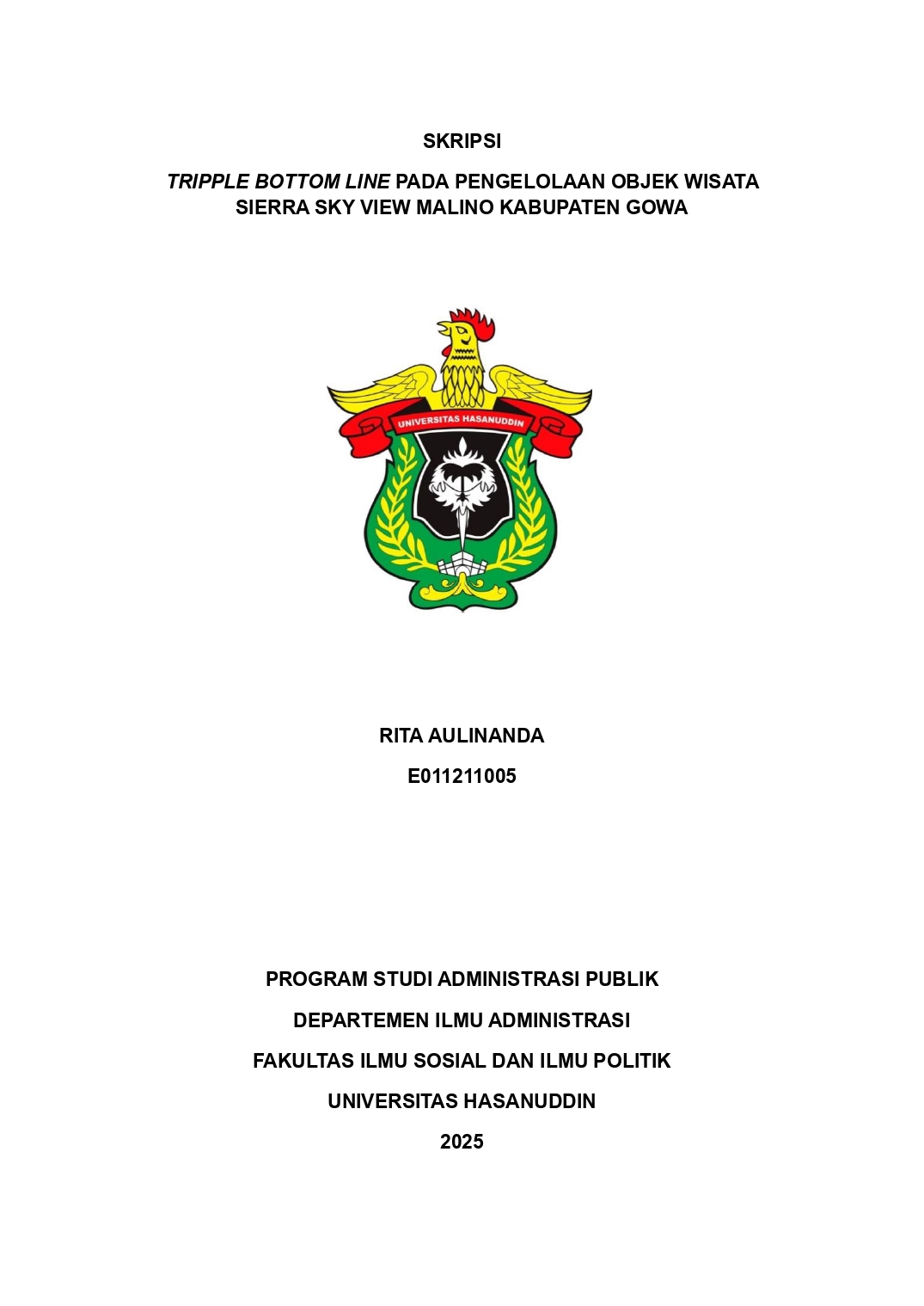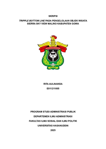 AULINANDA, RITA (2025) Triple Bottom Line Pada Pengelolaan Objek Wisata Sierra Sky View Malino Kabupaten Gowa = Triple Bottom Line in the Management of the Sierra Sky View Malino Tourist Attraction, Gowa Regency. Skripsi thesis, Universitas Hasanuddin.
