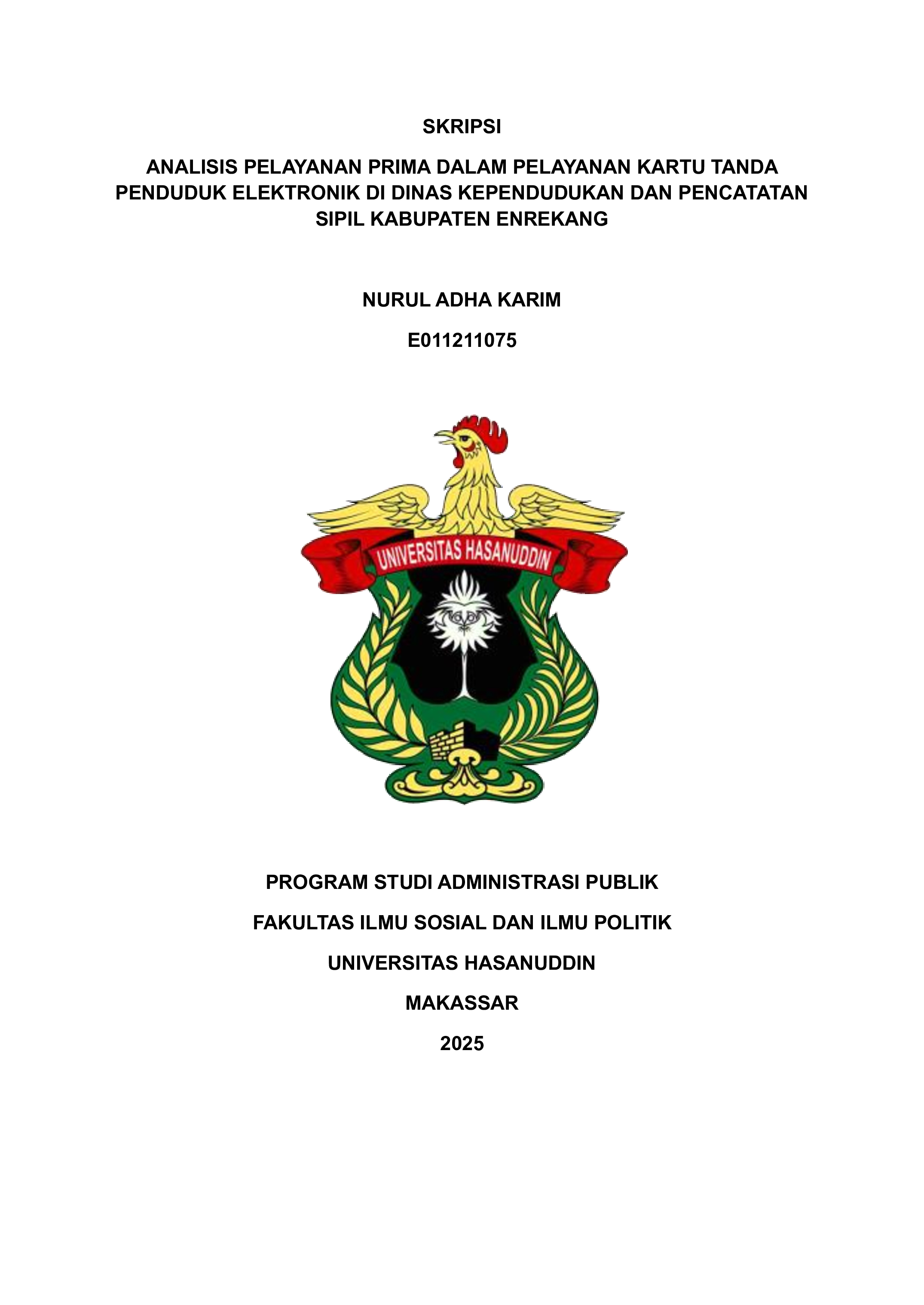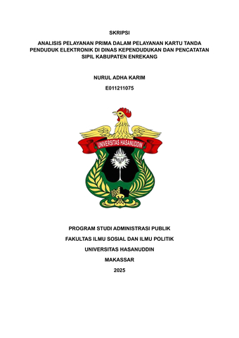 KARIM, NURUL ADHA (2025) Analisis Pelayanan Prima dalam Pelayanan Kartu Tanda Penduduk Elektronik di Dinas Kependudukan dan Pencatatan Sipil Kabupaten Enrekang = An Analysis of Excellent Service in the Administration of Electronic Identity Cards at the Departement of Population and Civil Registration of Enrekang Regency. Skripsi thesis, Universitas Hasanuddin.