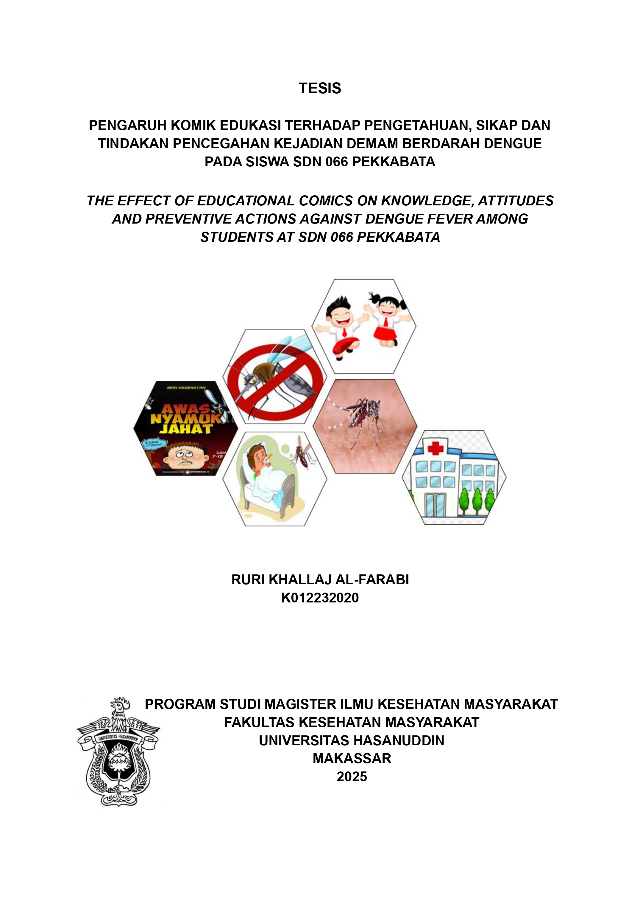 AL-FARABI, RURI KHALLAJ (2025) PENGARUH KOMIK EDUKASI TERHADAP PENGETAHUAN, SIKAP DAN TINDAKAN PENCEGAHAN KEJADIAN DEMAM BERDARAH DENGUE PADA SISWA SDN 066 PEKKABATA = THE EFFECT OF EDUCATIONAL COMICS ON KNOWLEDGE, ATTITUDES AND PREVENTIVE ACTIONS AGAINST DENGUE FEVER AMONG STUDENTS AT SDN 066 PEKKABATA. Thesis thesis, UNIVERSITAS HASANUDDIN MAKASSAR.