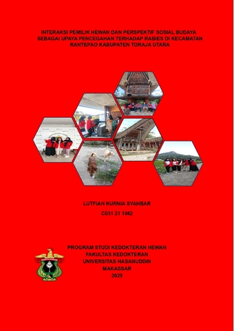 SYAHBAR, LUTFIAH KURNIA (2025) INTERAKSI PEMILIK HEWAN DAN PERSPEKTIF SOSIAL BUDAYA SEBAGAI UPAYA PENCEGAHAN TERHADAP RABIES DI KECAMATAN RANTEPAO KABUPATEN TORAJA UTARA = INTERACTION OF ANIMAL OWNERS AND SOCIO-CULTURAL PERSPECTIVE AS AN EFFORTS TO PREVENT RABIES IN RANTEPAO DISTRICT NORTH TORAJA REGENCY. Skripsi thesis, Universitas Hasanuddin.