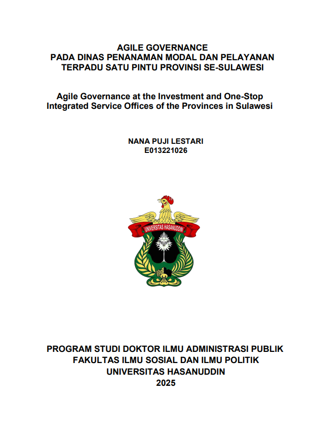 LESTARI, NANA PUJI (2025) AGILE GOVERNANCE PADA DINAS PENANAMAN MODAL DAN PELAYANAN TERPADU SATU PINTU PROVINSI SE-SULAWESIAGILE GOVERNANCE PADA DINAS PENANAMAN MODAL DAN PELAYANAN TERPADU SATU PINTU PROVINSI SE-SULAWESI = Agile Governance in the Investment and One-Stop Integrated Services Offices of Sulawesi Provinces. Disertasi thesis, Universitas Hasanuddin.