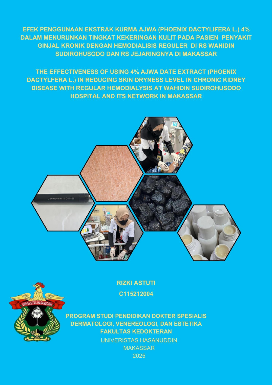 ASTUTI, RIZKI (2025) EFEK PENGGUNAAN EKSTRAK KURMA AJWA (PHOENIX DACTYLIFERA L.) 4% DALAM MENURUNKAN TINGKAT KEKERINGAN KULIT PADA PASIEN PENYAKIT GINJAL KRONIK DENGAN HEMODIALISIS REGULER DI RS WAHIDIN SUDIROHUSODO DAN RS JEJARINGNYA DI MAKASSAR = EFEK PENGGUNAAN EKSTRAK KURMA AJWA (PHOENIX DACTYLIFERA L.) 4% DALAM MENURUNKAN TINGKAT KEKERINGAN KULIT PADA PASIEN PENYAKIT GINJAL KRONIK DENGAN HEMODIALISIS REGULER DI RS WAHIDIN SUDIROHUSODO DAN RS JEJARINGNYA DI MAKASSAR. Thesis thesis, Universitas Hasanuddin.