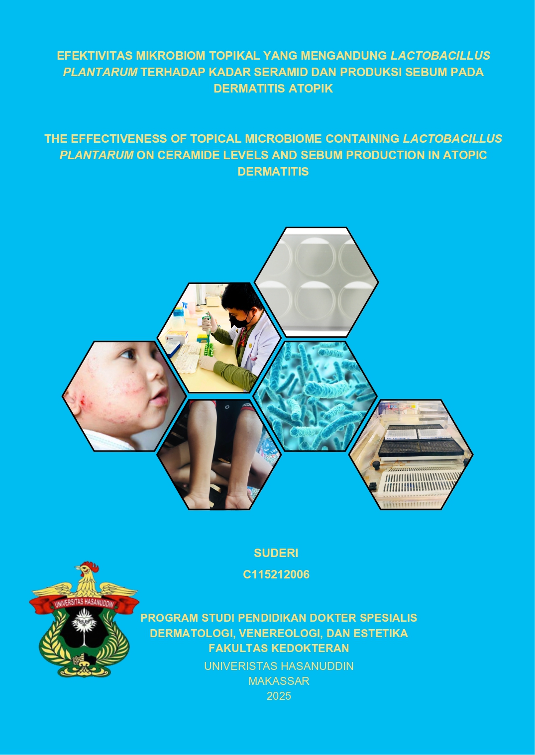 SUDERI, SUDERI (2025) EFEKTIVITAS MIKROBIOM TOPIKAL YANG MENGANDUNG LACTOBACILLUS PLANTARUM TERHADAP KADAR SERAMID DAN PRODUKSI SEBUM PADA DERMATITIS ATOPIK = THE EFFECTIVENESS OF TOPICAL MICROBIOME CONTAINING LACTOBACILLUS PLANTARUM ON CERAMIDE LEVELS AND SEBUM PRODUCTION IN ATOPIC DERMATITIS. Thesis thesis, Universitas Hasanuddin.