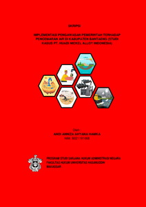 ABSTRAK ANDI ANNIZA AHYANA HAMKA (B021191068). Implementasi Pengawasan Pemerintah Terhadap Pencemaran Air Di Kabupaten Bantaeng (Studi Kasus PT. Huadi Nickel Alloy Indonesia) Dibimbing oleh Marthen Arie sebagai Pembimbing Utama dan Arini Nur Annisa sebagai Pembimbing Pendamping . Tujuan Penelitian ini untuk mengetahui kewenangan pemerintah terhadap pengawasan atas pencemaran air PT. Huadi Nickel Alloy Indonesia. serta untuk menganalisis efektivitas dari penerapan sanksi administrasi terhadap pencemaran air PT. Huadi Nickel Alloy Indonesia. Penelitian ini menggunakan metode penelitian hukum empiris, Lokasi Penelitian Kantor Dinas Lingkungan Hidup Kabupaten Bantaeng dan Desa Papanloe Kecamatan Pajukukang Kabupaten Bantaeng. Bahan hukum yang digunakan primer dan sekunder. Analisis data penelitian degan cara kualitatif deskriptif yaitu menjelaskan dan memeriksa fakta-fakta yang didapatkan di lapangan, setelah itu penyusun memberikan kesimpulannya. Hasil penelitian ini adalah (1) kewenangan pemerintah pusat terhadap pengawasan atas pencemaran air PT. Huadi Nickel Alloy Indonesia berdasarkan ketentuan Undang-Undang Cipta Kerja Nomor 6 Tahun 2023 Pasal 117 Ayat (1), Pemerintah Daerah Dinas lingkungan Hidup Kabupaten Bantaeng melakukan fungsi pembinaan terhadap PT. Huadi Nickel Alloy Berdasarkan ketentuan Undang Cipta Kerja Nomor 6 Tahun 2023 Pasal 63 Ayat (3), namun masyarakat masih merasakan dampak pencemaran air yang ditimbulkan oleh PT. Huadi Nickel Alloy Indoenesia. (2) Efektivitas pemberian sanksi administrasi paksaan oleh KLHK terhadap PT. Huadi Nickel Alloy Indonesia, belum maksimal dikarenakan tidak melaksanakan kewajibannya yang dimuat dalam keputusan Menteri LHK Nomor SK 5897/ MENLHK-PNLHK/PPSALHK/ GKM.0/07/2022 tentang Penerapan Sanksi Administrasi Paksaan kepada PT Huadi Nickel Alloy Indonesia. Kesimpulan: Kementerian Lingkungan Hidup dan Kehutanan sebagai lembaga pemerintah pusat yang memiliki kewenangan dalam pelaksanaan pengawasan dan penetapan sanksi administrasi terhadap pencemaran air. Kata Kunci : Pengawasan, Lingkungan Hidup, Sanksi Administrasi