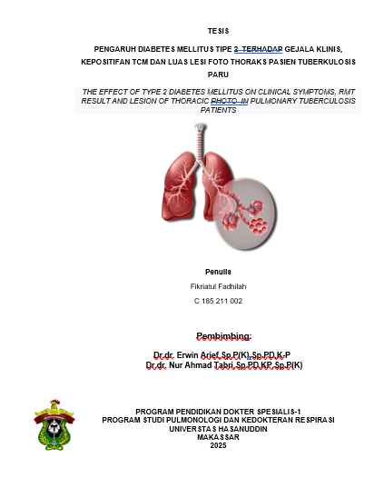FADHILAH, FIKRIATUL (2025) Pengaruh Diabetes Mellitus Tipe 2 Terhadap Gejala Klinis, Kepositifan Tcm Dan Luas Lesi Foto Thoraks Pasien Tuberkulosis Paru = The Effect Of Type 2 Diabetes Mellitus On Clinical Symptoms, Rmt Result And Lesion Of Thoracic Photo In Pulmonary Tuberculosis Patients. Thesis thesis, Universitas Hasanuddin.