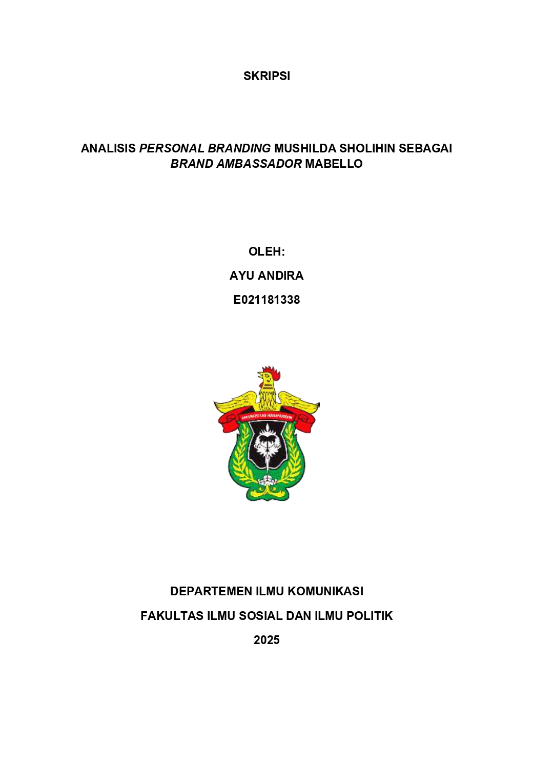 ANDIRA, AYU (2025) ANALISIS PERSONAL BRANDING MUSHILDA SHOLIHIN SEBAGAI BRAND AMBASSADOR MABELLO = Analysis of the Personal Branding of Mushilda Sholihin as a Brand Ambassador for Mabello. Skripsi thesis, Universitas Hasanuddin.