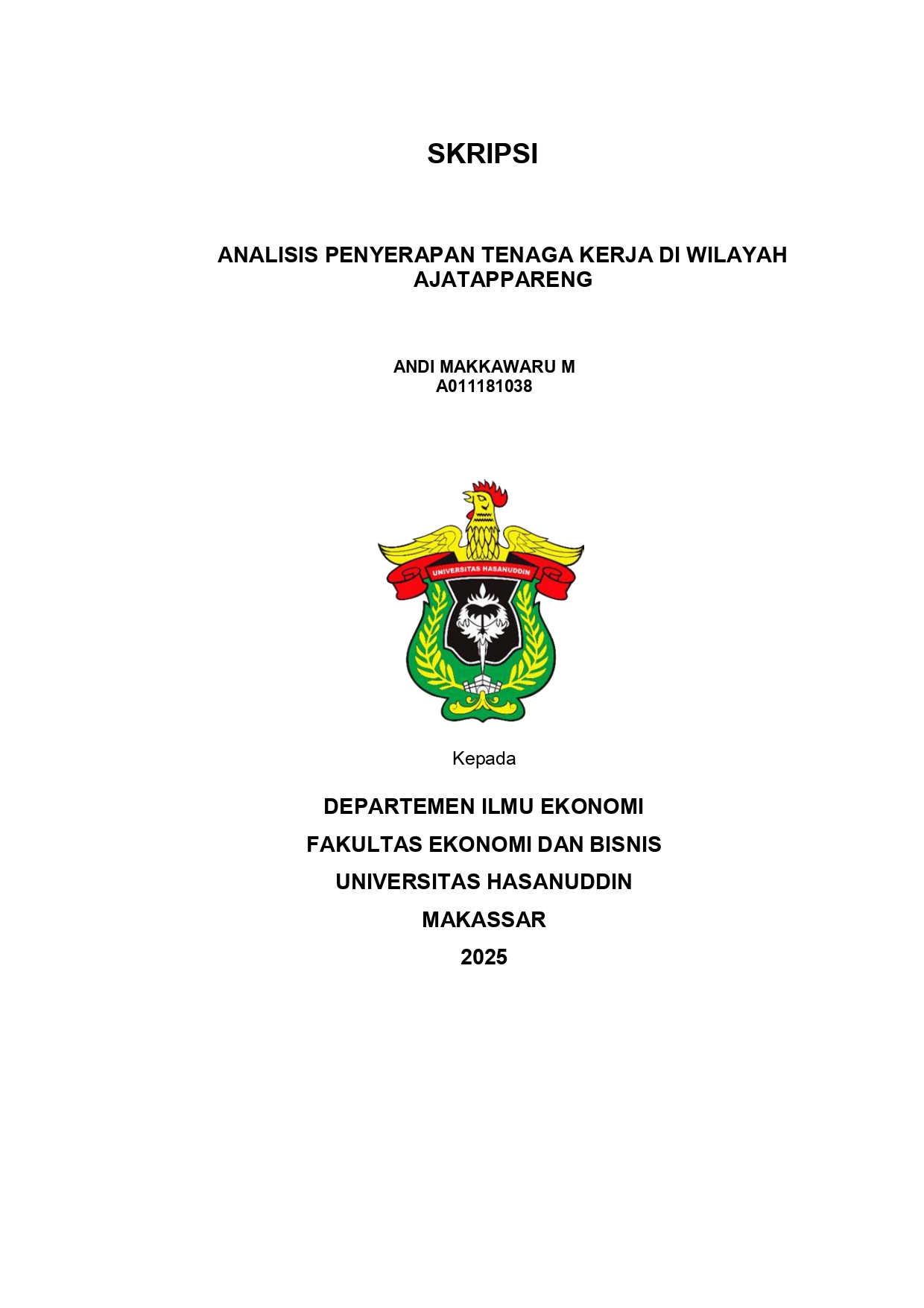 M, ANDI MAKKAWARU (2025) Analysis Penyerapan Tenaga Kerja di Wilayah AJATAPPARENG = Analysis of Labor Absorption in the AJATAPPARENG Region. Skripsi thesis, Universitas Hasanuddin.