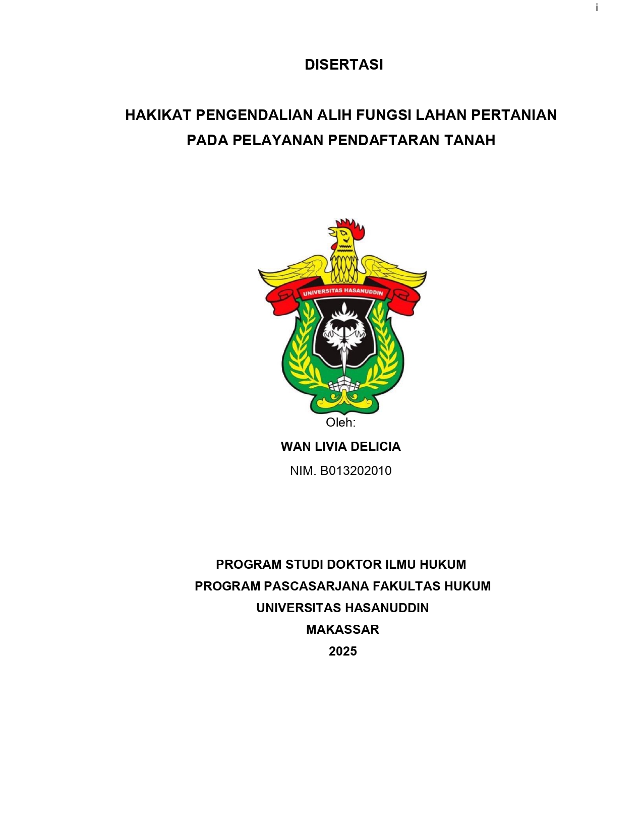 DELICIA, WAN LIVIA (2025) HAKIKAT PENGENDALIAN ALIH FUNGSI LAHAN PERTANIAN PADA PELAYANAN PENDAFTARAN TANAH = THE NATURE OF CONTROL OVER AGRICULTURAL LAND CONVERSION IN LAND REGISTRATION SERVICES. Thesis thesis, UNIVERSITAS HASANUDDIN.