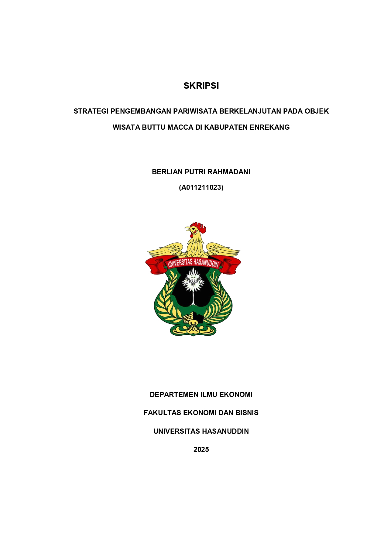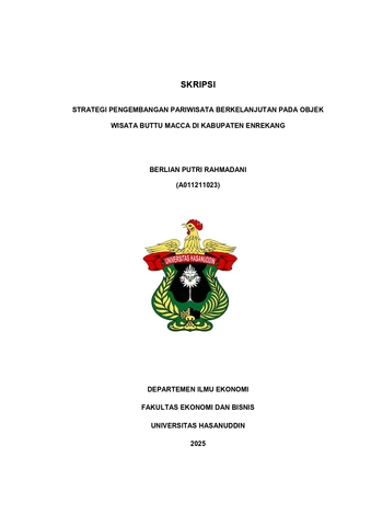 RAHMADANI, BERLIAN PUTRI (2025) STRATEGI PENGEMBANGAN PARIWISATA BERKELANJUTAN PADA OBJEK WISATA BUTTU MACCA DI KABUPATEN ENREKANG = SUSTAINABLE TOURISM DEVELOPMENT STRATEGY AT BUTTU MACCA TOURIST ATTRACTION IN ENREKANG REGENCY. Skripsi thesis, Universitas Hasanuddin.