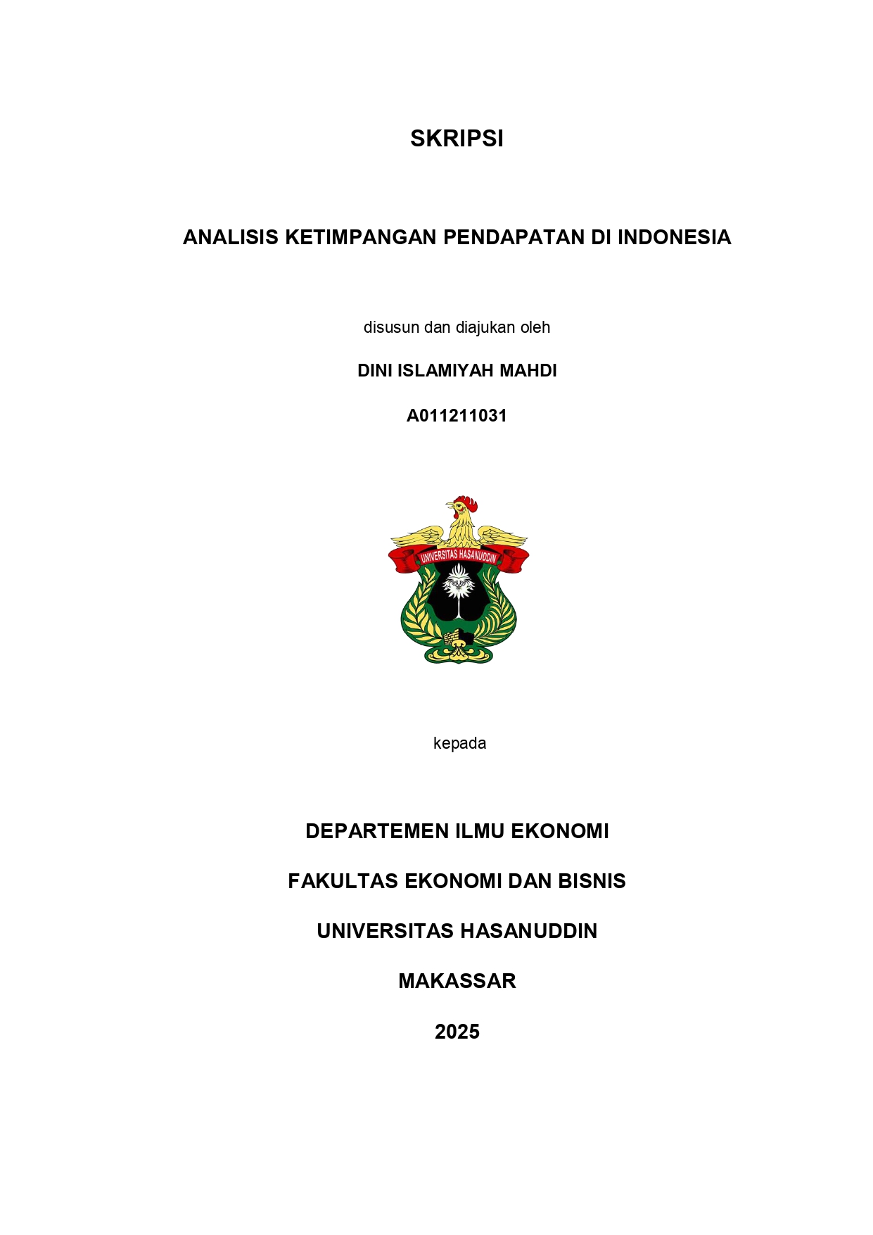 MAHDI, DINI ISLAMIYAH (2025) Analisis Ketimpangan Pendapatan di Indonesia = Analysis Of Income Inequality In Indonesia. Skripsi thesis, Universitas Hasanuddin.