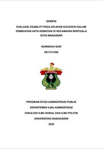 SARI, NURINDAH (2025) Evaluasi Usability Pada Aplikasi Kucata’ki Dalam Pembuatan Akta Kematian Di Kecamatan Bontoala Kota Makassar = Usability Evaluation of Kucata'ki Application in Making Death Certificates in Bontoala District Makassar City. Skripsi thesis, UNIVERSITAS HASANUDDIN.