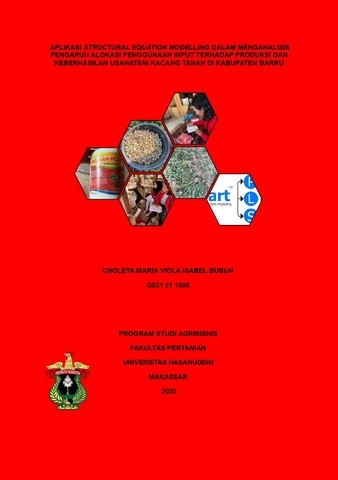 BUBUN, CHOLETA MARIA VIOLA ISABEL (2025) APLIKASI STRUCTURAL EQUATION MODELLING DALAM MENGANALISIS PENGARUH ALOKASI PENGGUNAAN INPUT TERHADAP PRODUKSI DAN KEBERHASILAN USAHATANI KACANG TANAH DI KABUPATEN BARRU = THE APPLICATION OF STRUCTURAL EQUATION MODELING IN ANALYZING THE INFLUENCE OF INPUT ALLOCATION ON THE PRODUCTION AND SUCCESS OF PEANUT FARMING IN BARRU REGENCY. Skripsi thesis, Universitas Hasanuddin.