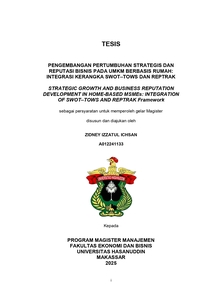 ICHSAN, ZIDNEY IZZATUL (2025) PENGEMBANGAN PERTUMBUHAN STRATEGIS DAN REPUTASI BISNIS PADA UMKM BERBASIS RUMAH: INTEGRASI KERANGKA SWOT–TOWS DAN REPTRAK = STRATEGIC GROWTH AND BUSINESS REPUTATION DEVELOPMENT IN HOME-BASED MSMEs: INTEGRATION OF SWOT–TOWS AND REPTRAK Framework. Thesis thesis, Universitas Hasanuddin.