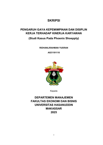 Yusran, Ridhanlirahman (2025) PENGARUH GAYA KEPEMIMPINAN DAN DISIPLIN KERJA TERHADAP KINERJA KARYAWAN = THE INFLUENCE OF LEADERSHIP STYLE AND WORK DISCIPLINE ON EMPLOYEE PERFORMANCE. Skripsi thesis, Universitas Hasanuddin.