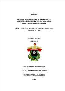 NATALIA, ESTERINA (2025) ANALISIS PENGARUH GAGAL BAYAR DALAM PENGGUNAAN PINJAMAN ONLINE TERHADAP PROFITABILITAS PERUSAHAAN (Studi Kasus pada Perusahaan Fintech Lending yang Terdaftar di OJK) = An Analysis of the Effect of Loan Defaults on the Profitability of Fintech Lending Firms (A Case Study of Companies Registered with Indonesia’s Financial Services Authority, OJK). Skripsi thesis, Universitas Hasanuddin.