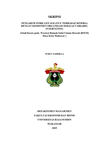 FADHILLA, NURUL (2025) PENGARUH WORK LIFE BALANCE TERHADAP KINERJA DENGAN KOMITMEN ORGANISASI SEBAGAI VARIABEL INTERVENING (STUDI KASUS PADA PERAWAT RUMAH SAKIT UMUM DAERAH DAYA KOTA MAKASSAR) = THE EFFECT OF WORK LIFE BALANCE ON PERFORMANCE WITH ORGANIZATIONAL COMMITMENT AS AN INTERVENING VARIABLE (CASE STUDY OF NURSES AT DAYA REGIONAL GENERAL HOSPITAL MAKASSAR CITY). Skripsi thesis, Universitas Hasanuddin.