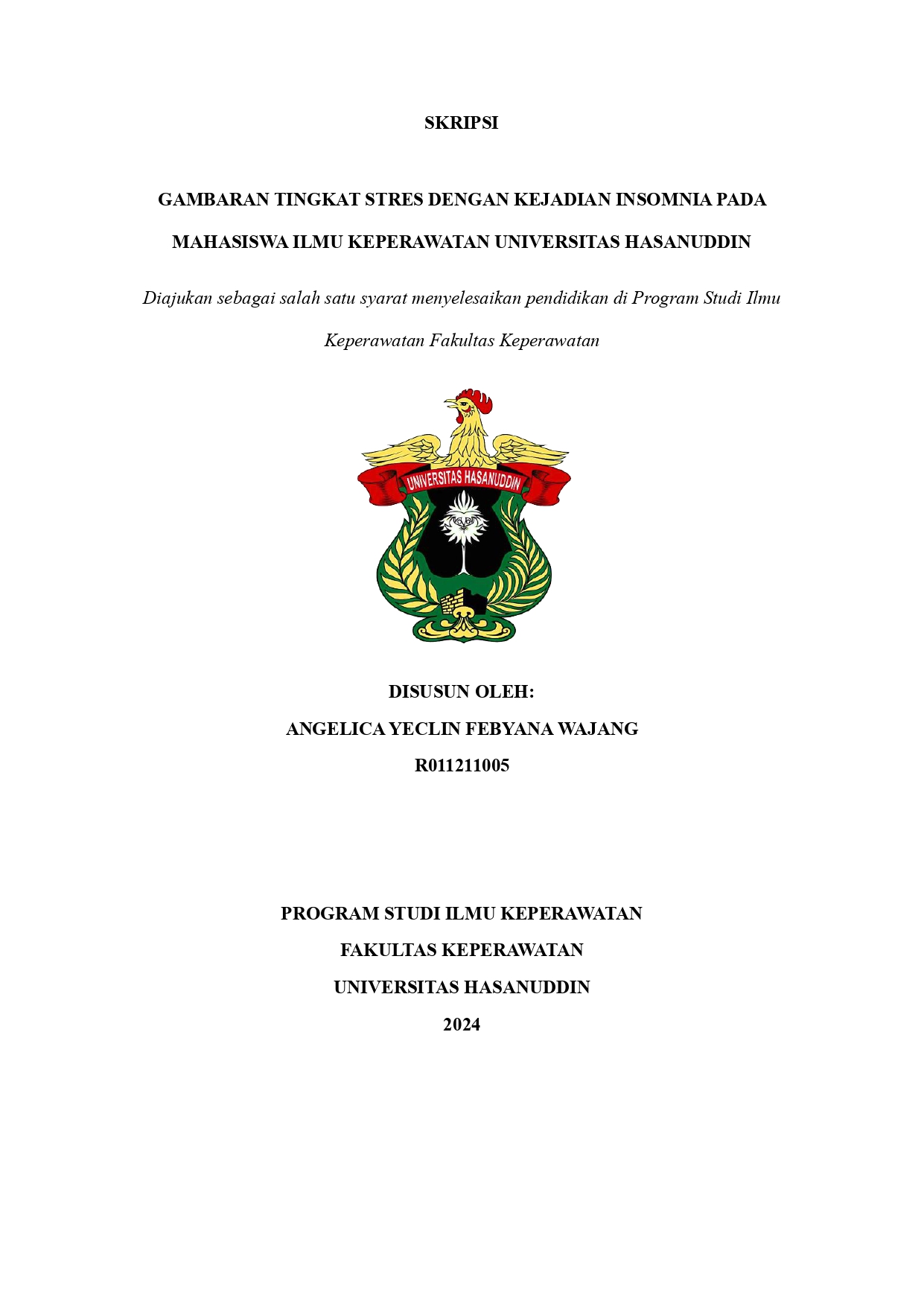 WAJANG, ANGELICA YECLIN FEBYANA (2024) Gambaran Tingkat Stres Dengan Kejadian Insomnia Pada Mahasiswa Ilmu Keperawatan Universitas Hasanuddin = The Overview of Stress Levels and Insomnia Occurrence Among Nursing Science Students at Hasanuddin University. Skripsi thesis, Universitas Hasanuddin.