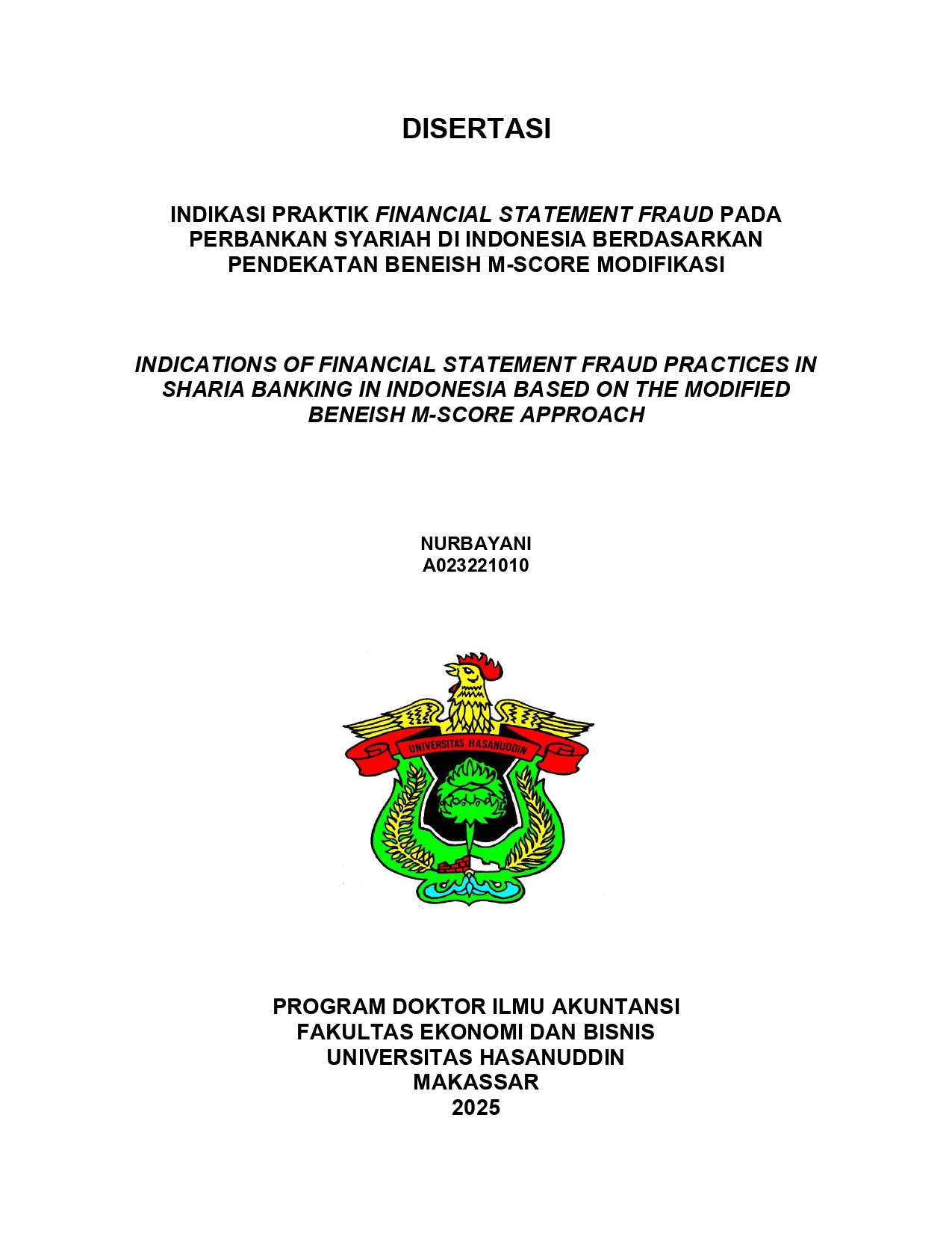 NURBAYANI, NURBAYANI (2025) INDIKASI PRAKTIK FINANCIAL STATEMENT FRAUD PADA PERBANKAN SYARIAH DI INDONESIA BERDASARKAN PENDEKATAN BENEISH M-SCORE MODIFIKASI = INDICATIONS OF FINANCIAL STATEMENT FRAUD PRACTICES IN SHARIA BANKING IN INDONESIA BASED ON THE MODIFIED BENEISH M-SCORE APPROACH. Disertasi thesis, Universitas Hasanuddin.